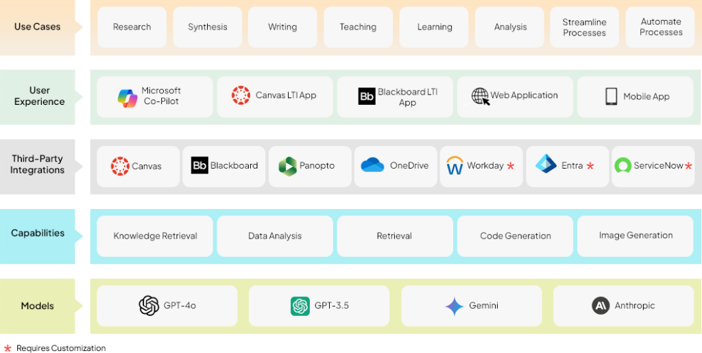 Use safe and affordable AI for teaching, learning, administration, research, and other needs.